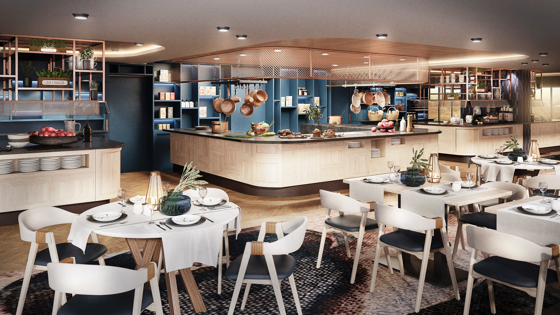 A-ROSA SENA will offer our widest choice of dining options yet – as well as a distinct flavour of the places you’ll visit. Inspired by the market halls of Europe, A-ROSA MARKET will be the go-to for casual buffet dining with a focus on regional specialities, locally-sourced produce and organic food. It will also feature a cafe, a bakery and a family area. If you’d rather not lift a finger, choose waiter service at THE PAVILION, or, for al fresco eats, go for RIVERSIDE where you can tuck into things like fish pans, mussels and wok dishes, cooked live in front of you.