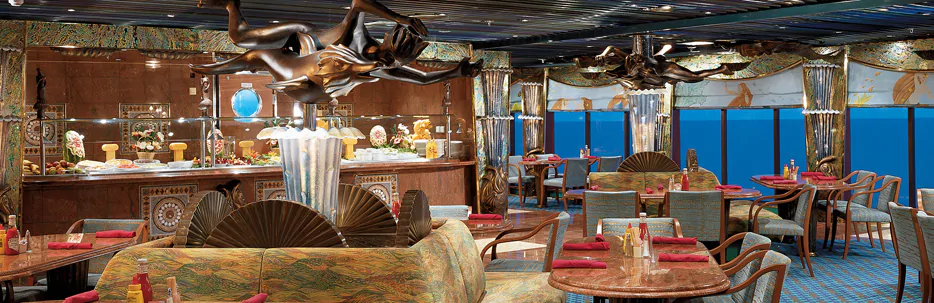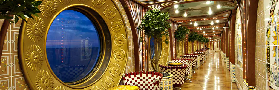 Carnival Pride le invita a una cena refinada, desde la simplicidad zen de Bonsai Sushi hasta la inspiración de los transatlánticos art deco del Normandie Restaurant, sin mencionar el encanto de la era renacentista de David’s Steakhouse. Y, por supuesto, hay una sustancia real y deliciosa bajo todo ese estilo. Pero para algo un poco más casual, suéltese la corbata…o quizá simplemente tírela y tome un plato principal (y patatas fritas) de nuestro chef Guy Fieri, en Guy’s Burger Joint. El calor mexicano es opcional en BlueIguana Cantina, pero haga su próxima parada en Cherry on Top – nuestra tienda de dulces y más – donde todo es dulce.