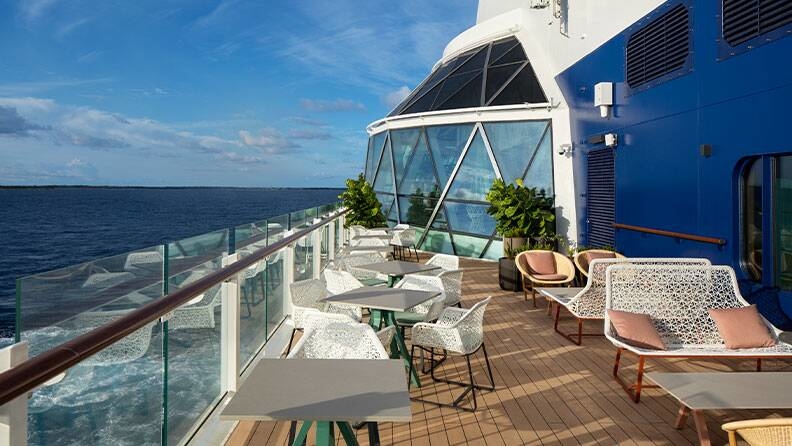 Celebrity Edge marca un punto de inflexión en nuestro enfoque del diseño de barcos. Desde los primeros bocetos hasta la experiencia de estos diseños en un entorno de realidad virtual, cada paso se hizo en 3D. Desde la increíble alfombra mágica hasta las piscinas privadas en nuestras nuevas Villas Edge de 2 pisos, pudimos diseñar el barco más refinado en el mar. El diseño único hacia afuera rompe con el diseño tradicional de los barcos. A bordo, se sentirá más conectado con el mar y los lugares que visitará en una variedad de espacios que van desde nuestro camarotes Edge con Infinite Verandas℠, hasta nuestra reimaginada terraza de piscina que ofrece aún más vistas de los destinos y el brillo del océano.