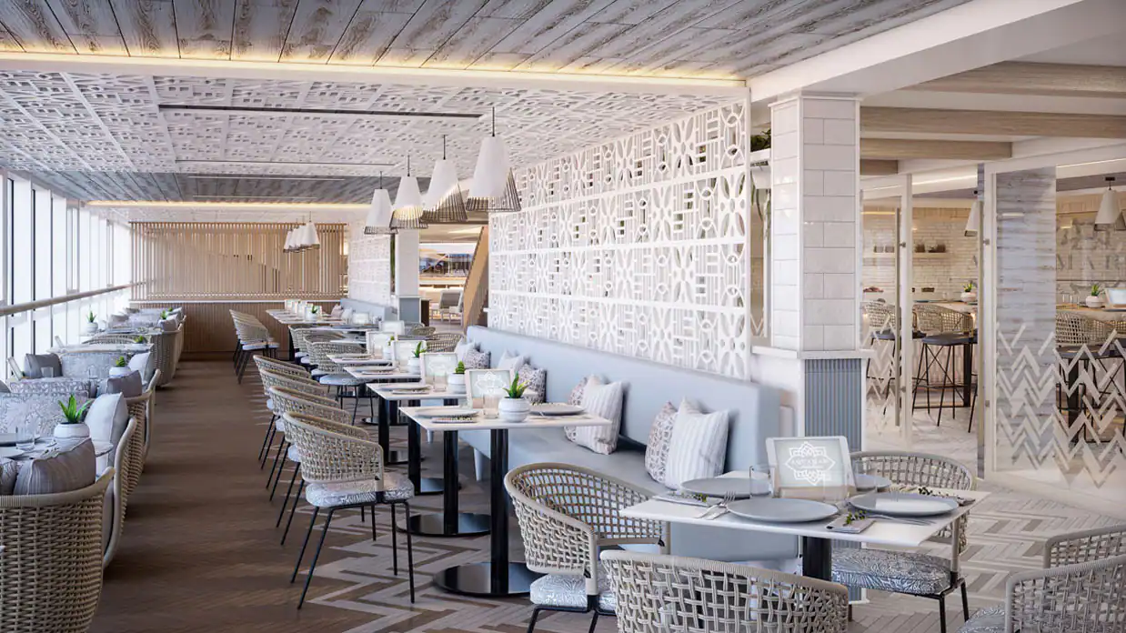 Vista is your world from a new perspective and honors our passion for serving The Finest Cuisine at Sea with imaginative new dining concepts and the debut of new epicurean delights. Be among the first to experience Ember, the newest addition to the Oceania Cruises family of restaurants, and Aquamar, Kitchen, offering an array of indulgent, wellness-inspired dishes. Enjoy unforgettable dining experiences at treasured and iconic dining venues that have been elevated to new heights, from the refined elegance of The Grand Dining Room to the ultimate steakhouse experience at Polo Grill. Join us as we embark on the next chapter of Oceania Cruises’ culinary story.